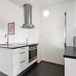 يتوفر المطبخ المجهز مع الغلاية الكهربائية وماكينة القهوة والشاي والبرَّاد كجزء من مرافق الخدمة الذاتية في الشقة.